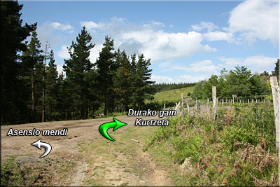 Tras ella se inicia un estrecho camino que poco después se estrecha hasta formar un marcado sendero que asciende por el cordal de Durako gain hasta la cima.